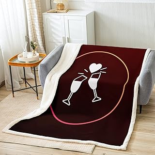 Erosebridal Couple Fleece Bed Blanket Red Wine Glass Plush Blanket Throw Romanti